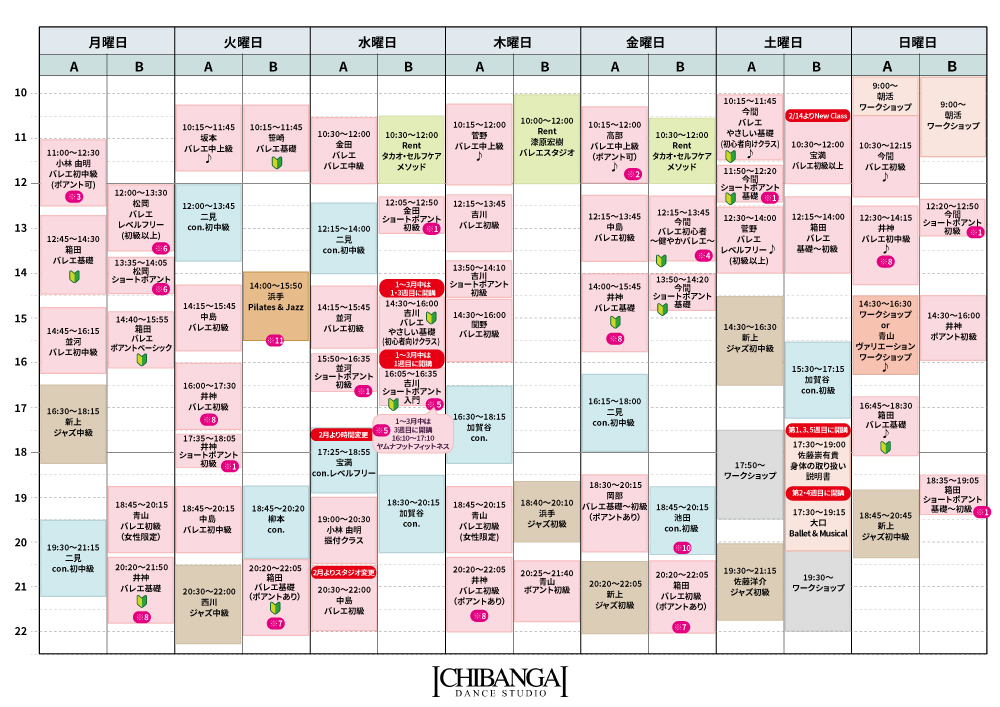 Time Table スケジュール スケジュールPDF 代講・休講のお知らせ スマートフォンの方はこちら 代講・休講のお知らせ ページトップへ 代講・休講のお知らせ クラスレベルについて 受講上の注意 よくあるご質問 リンク レンタルスタジオについて 最新情報